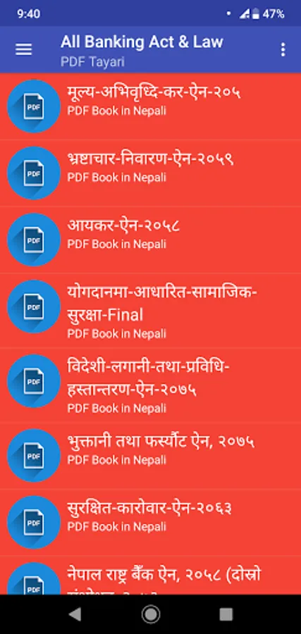 All Nepali Banking Act & Law App is a web and mobile based single application for exam preparation of Nepal Rastra Bank, Rastriya Banijya Bank Limited, Agricultural Development Bank, Nepal Bank Limited & All other Private Banking Examination. You can get exam questions, banking exam notes, old questions sets, various banking acts and laws, & latest news.