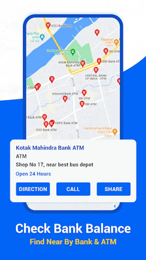 Never run out of cash! Using the bank balance checker app, you can find bank ATMs and bank branches close to your location.