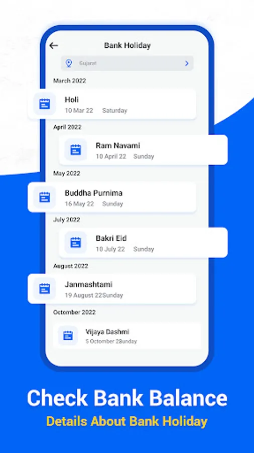 Yes, you can check bank holidays for all Indian state. This includes national holidays, festivals & more.