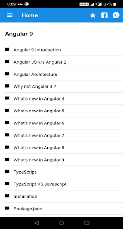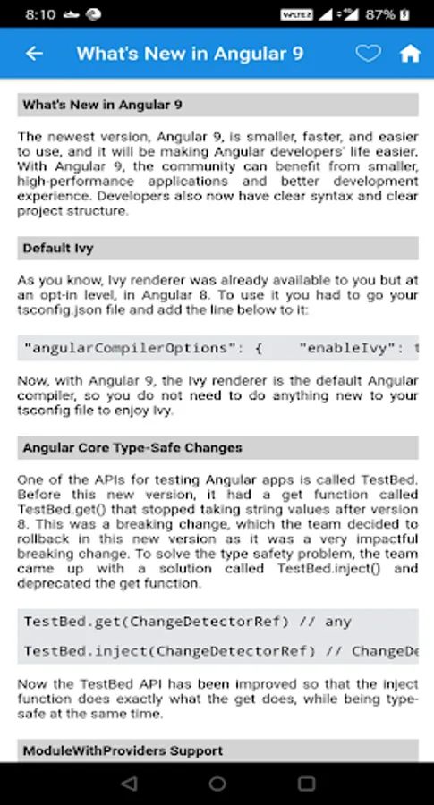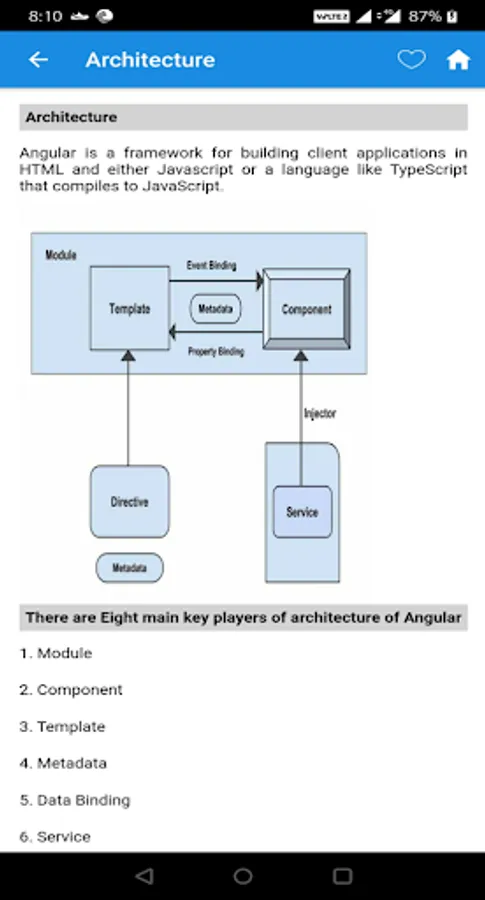 The content in this app is not limited to one resource(us) but created with reference of multiple paid and free resources to fetch out the best, short and easy to understand material, that will save your time as well as give you the full concept detail at same time with code examples as well as we are providing you interview question's for angular 2/4/6/7/8/9.