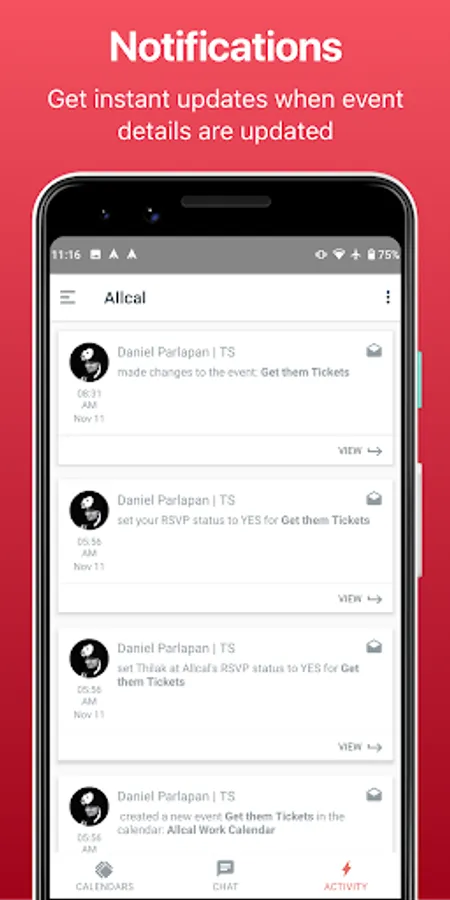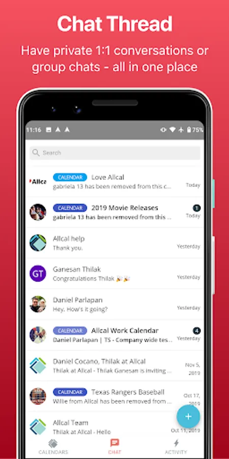 Create a calendar, add events and share with a group. Keep track of invite responses.Built-in chat allows you to collaborate within the calendar.