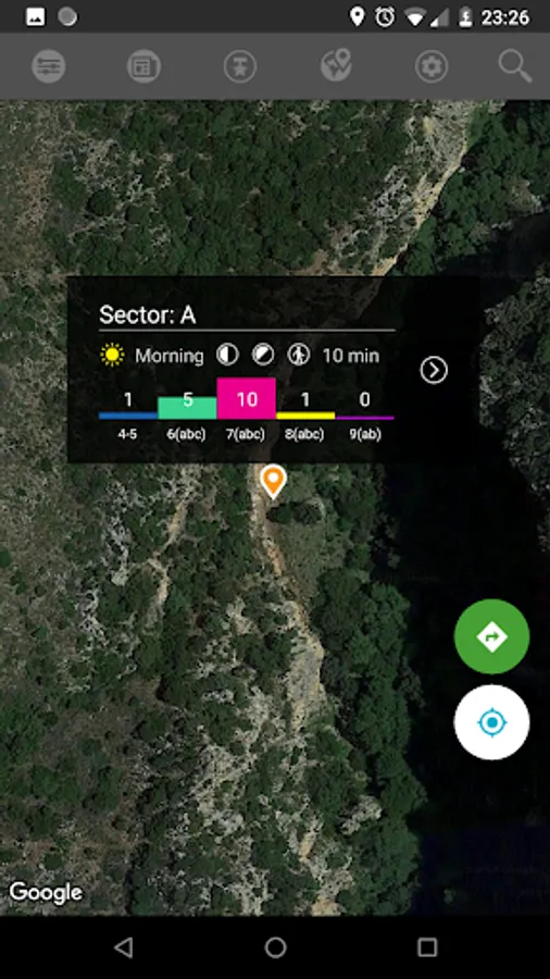 The application can work offline, without Internet access, just make sure you downloaded sectors or whole areas you need in advance. You can download them all at once (on the "App Guides" tab of the main menu) or manually, sector by sector. And make sure your device’s battery has enough power to keep you on track as long as you need it!