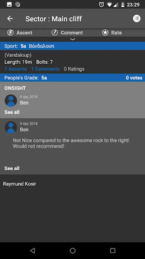 You can leave comments, vote for a route rating or for an alternative "public" grade. You can log your Ascents and see your friends activity.