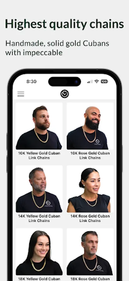 Our app offers an easy and seamless shopping experience, so you can browse and select your favorite Cuban link chain from the comfort of your own home. All of these chains are made by our experienced goldsmiths in the heart of Miami’s jewelry district.
