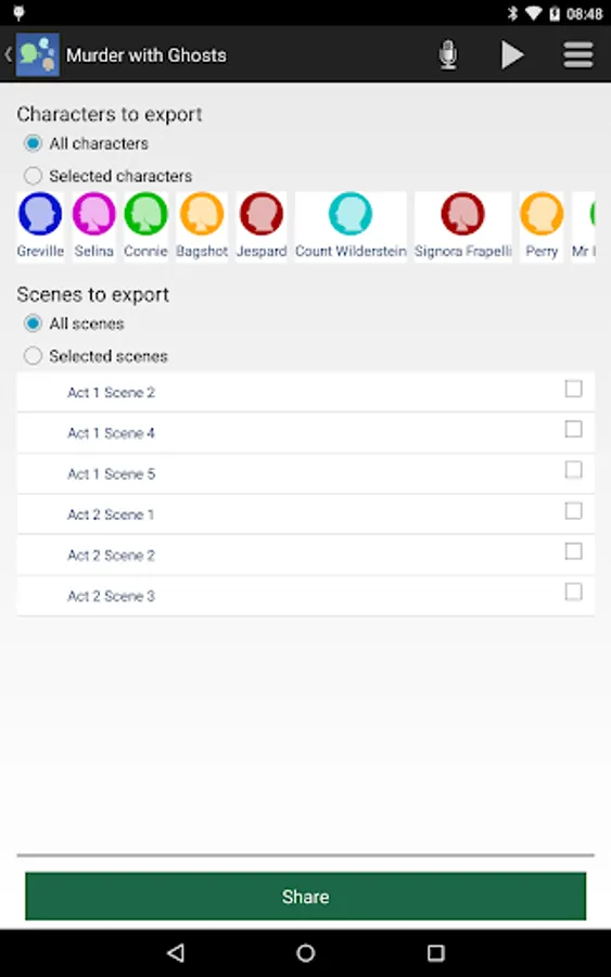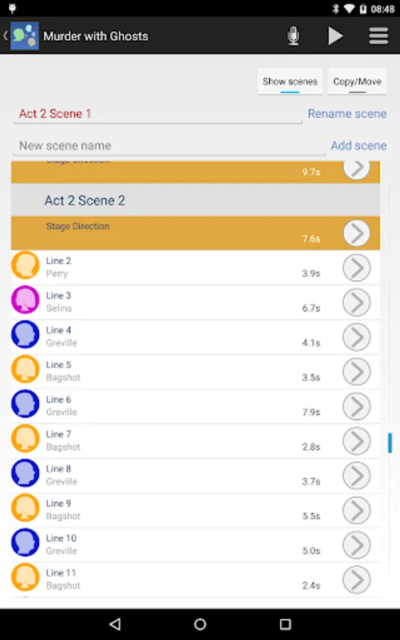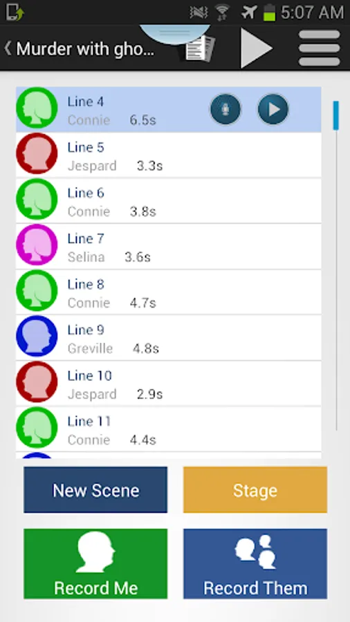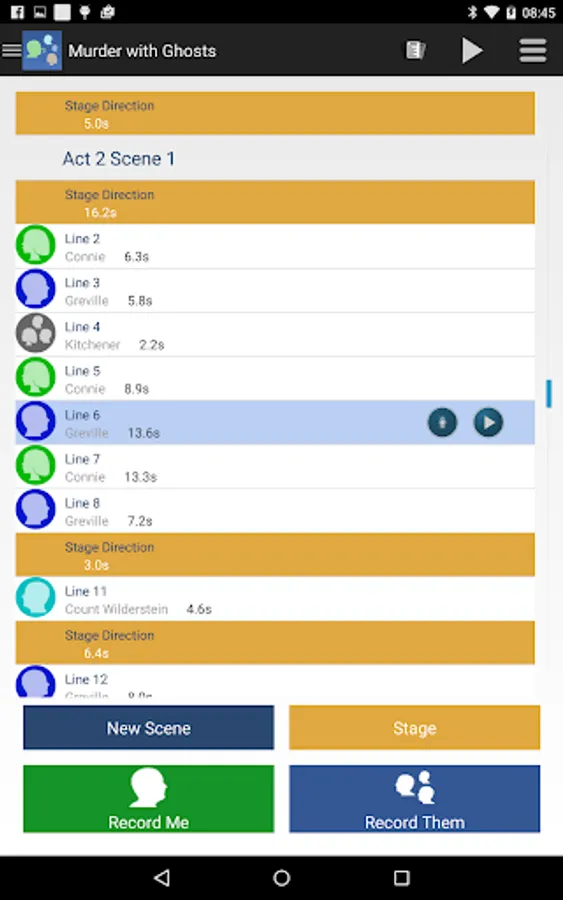LineLearner enables you to record scenes from plays. It then allows you to listen to the full recording which you learn your part. You can then turn off your part of the recording leaving just the other parts, and the gaps into which you say your lines.