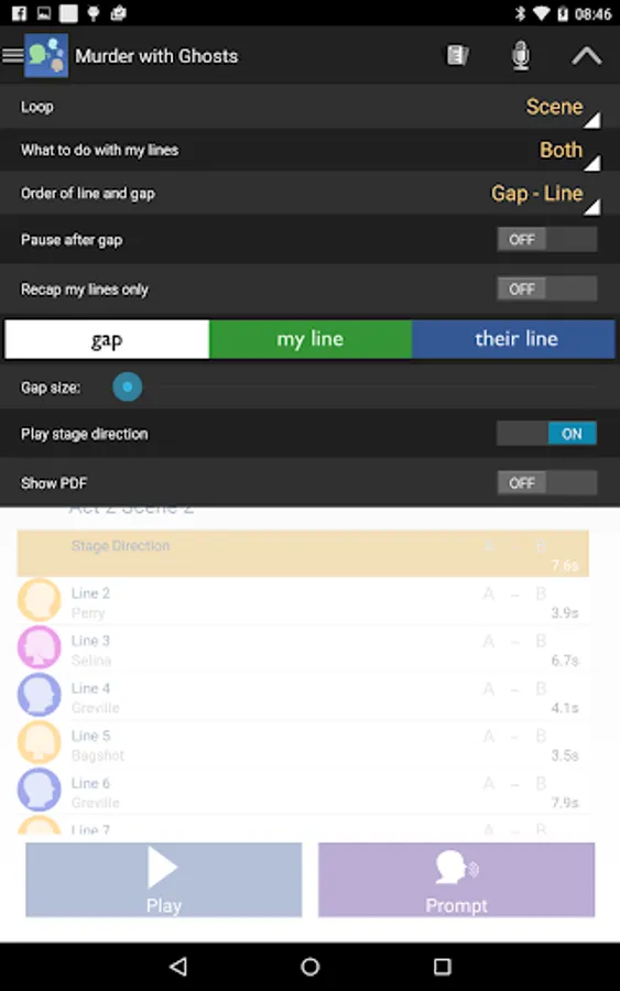 You still have a prompt button to remind you of your lines if you forget. You can repeat individual lines, or the whole play at the touch of a button.