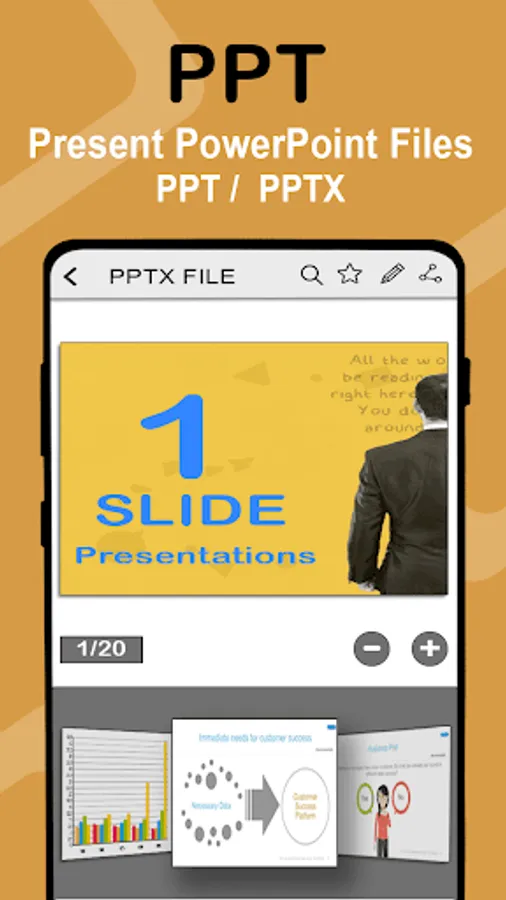 Offline docs writer & editor or files creator with change file type use for reading .ppsx, .bmp, .gif, .ppsm, .odp, .wmf, .pps, .pot, .ppam, .emf, .pptx, and .wmv in any file viewer pdf creator tool.