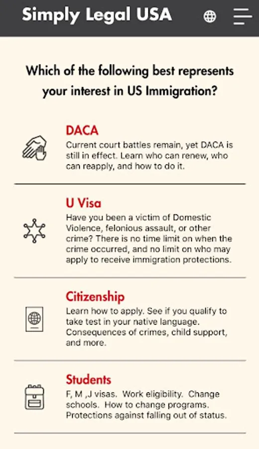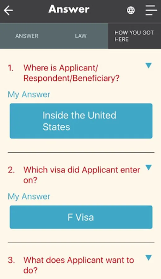 Anyone can enter the site, with no knowledge of US Immigration laws, and be able to confidently answer real-life personal questions — not confusing legal questions, and in turn instantly receive a customized immigration guide. This is made possible by innovation and investment in technology working behind the scenes navigating US government forms, instructions, guides, worksheets, etc.