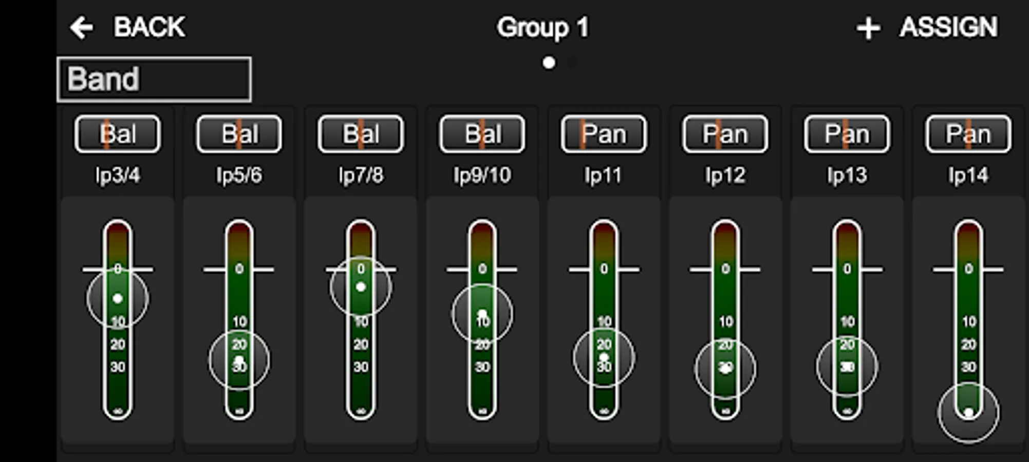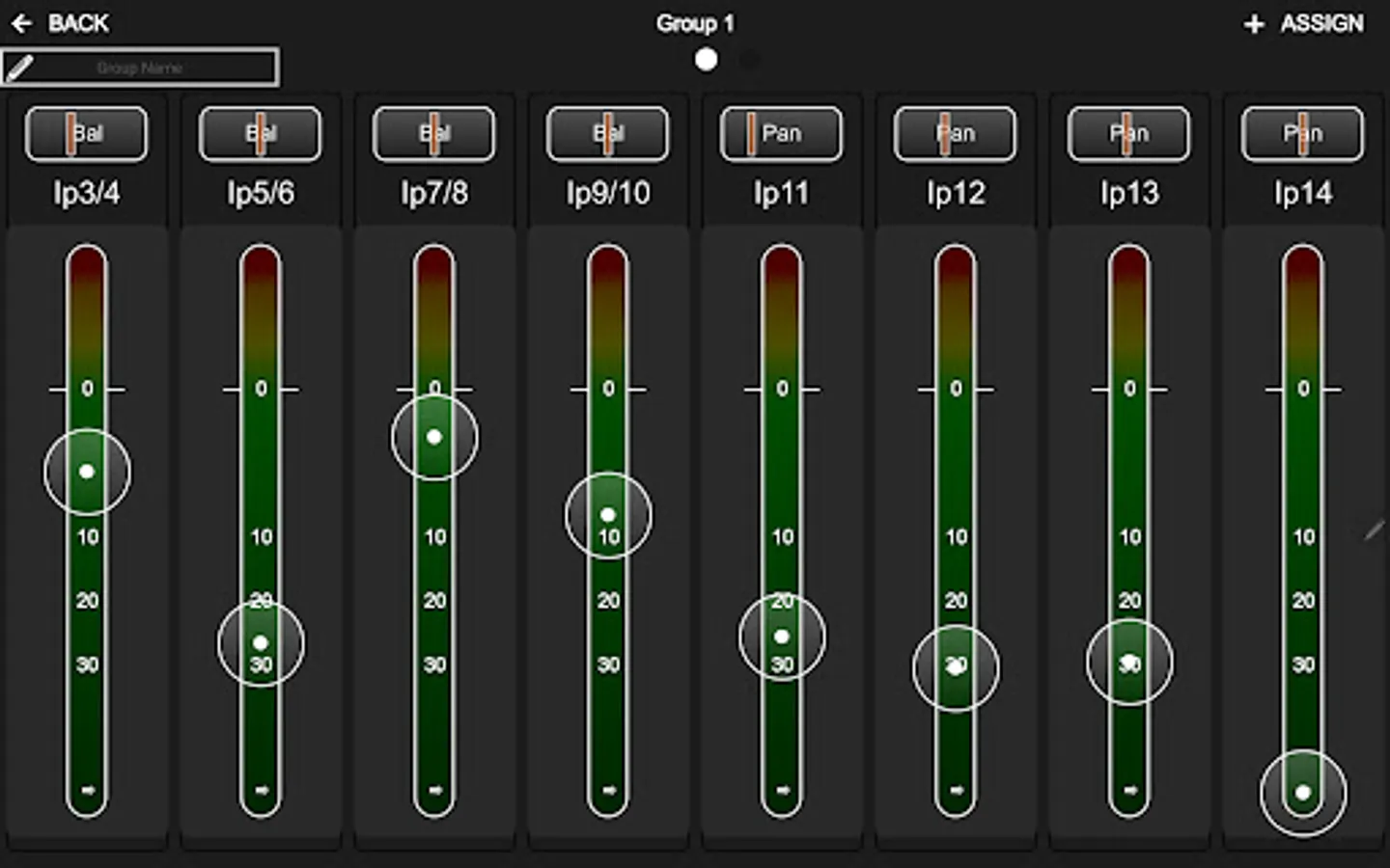 - Assign up to 4 groups of channels to level trim wheels