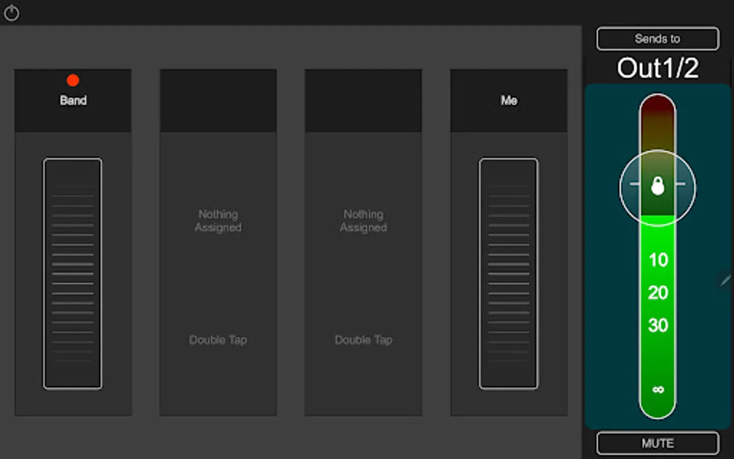 - Control the aux mix level and mute