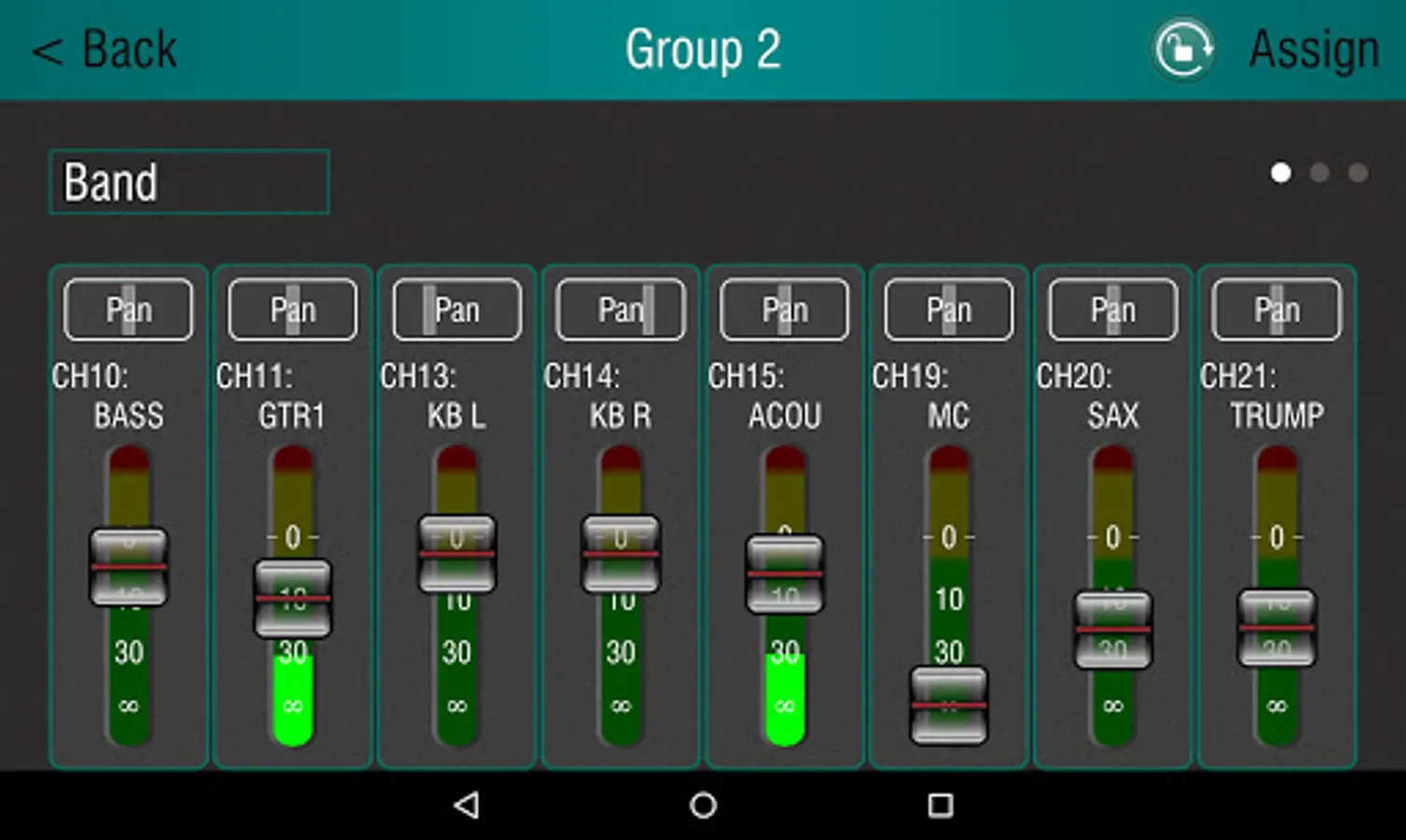 - Select a mix to control (From any Qu Mix or Groups running in Mix Mode)