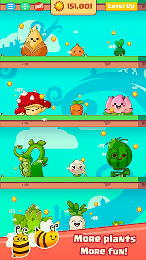 🍄 Upgrade your plants to evolve them and gain more nutrients. Each evolution introduces a new style that looks very cute and fun.