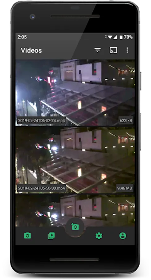 * Videos. Watch, download or delete recorded videos. Filter video lists by monitor, start date/time and end date/time.