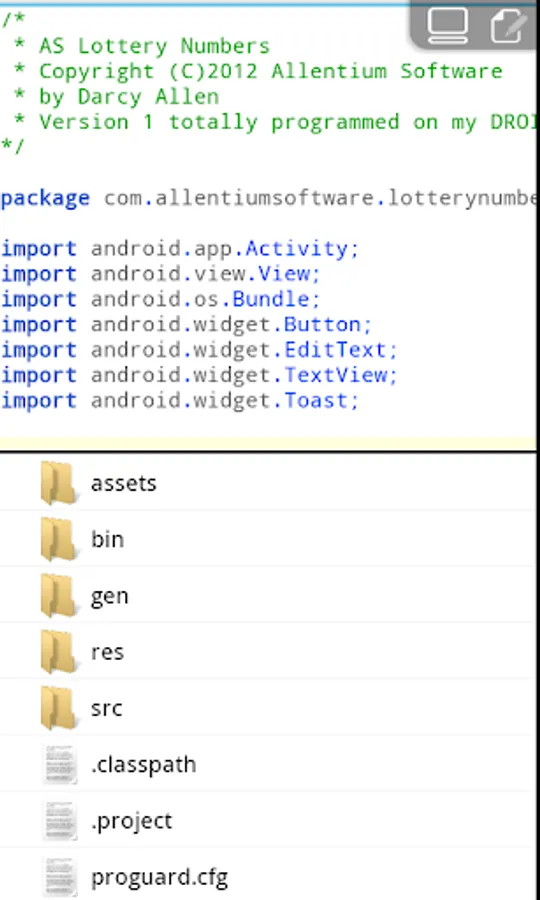 This app was originally created on a Motorola Droid 3 smartphone using the AIDE programmer tool.