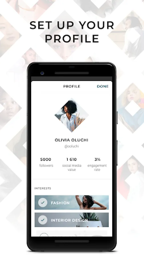 In Sparks, you can choose your areas of interest, have an overview of your profile and at the same time follow your social media value. In the app, you can see all current campaigns that match your chosen interests and search for the campaigns that suit you best.