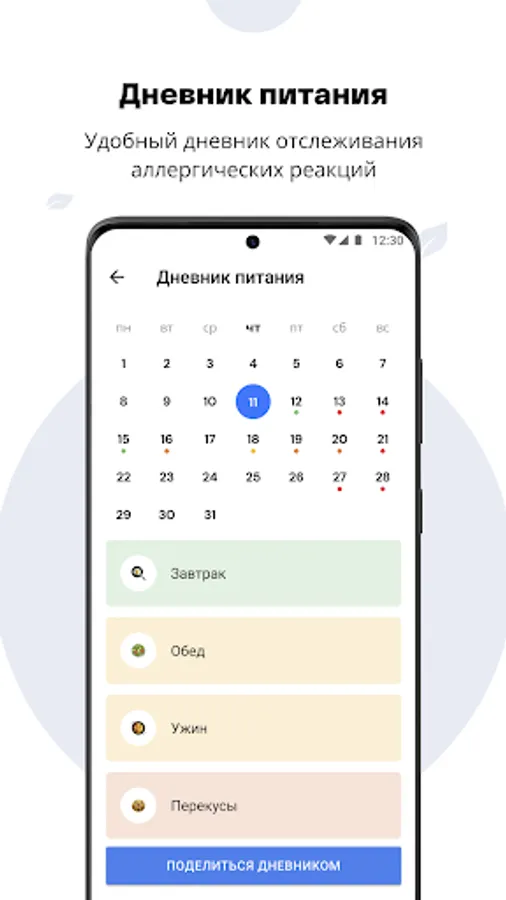 2. The Food Diary service allows you to record your daily menu and track your symptoms regularly. Send this data to the doctor for any period of time!