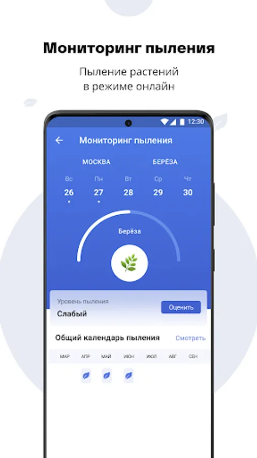 1. The Pollen Monitoring service contains an aggregator of several sources of pollination data and pollination calendars in all regions of Russia. Not only can you know pollen levels in advance and compare different pollen data in your city, but you can also evaluate the accuracy of each source in the app, helping other allergy sufferers. Just choose your city and allergen!
