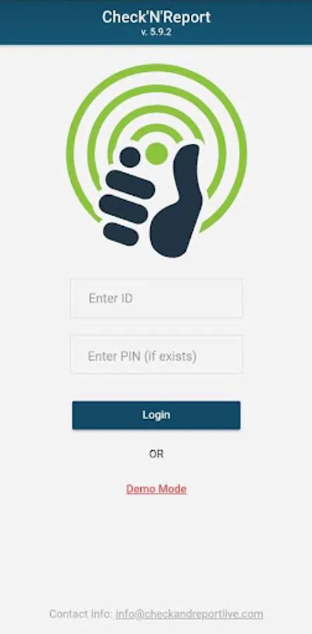 Brug demo som Brugerid og Adgangskode til at logge ind på denne App og til Web Appen http://www.checkandreportlive.com/