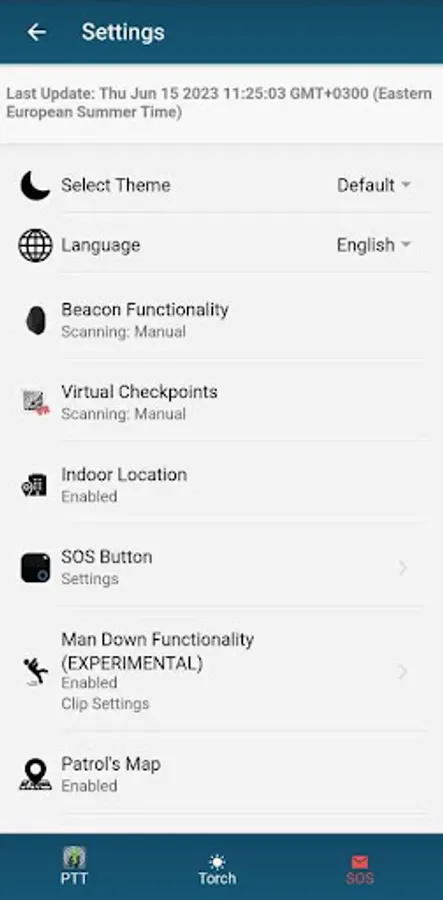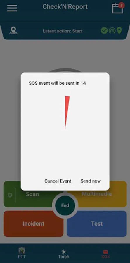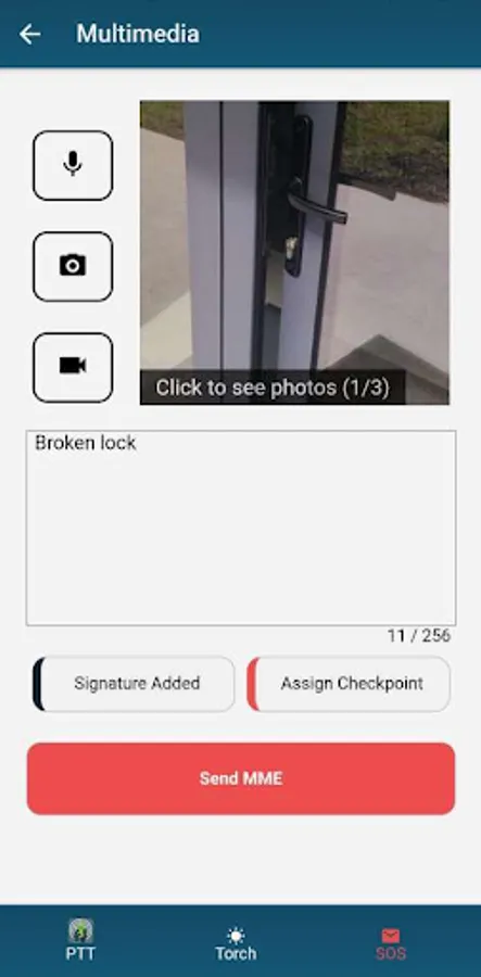 I Appen er der også en TEST-knap og en SOS-knap. Medarbejderen kan også sende billeder og lydoptagelse live til kontrolrummet.
