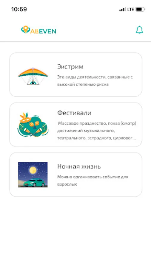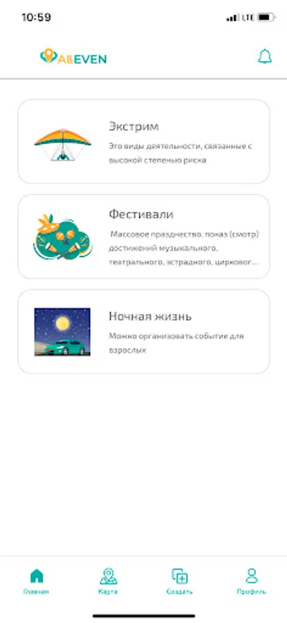 With the help of the Alleven application, you will always be aware of all the events that take place near you. And if you organize such events yourself, then the application will help you talk about it.