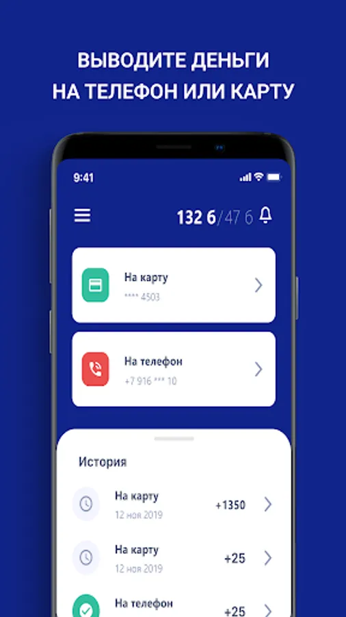 4. Withdraw money to your phone or bank card VISA / Master Card / MIR