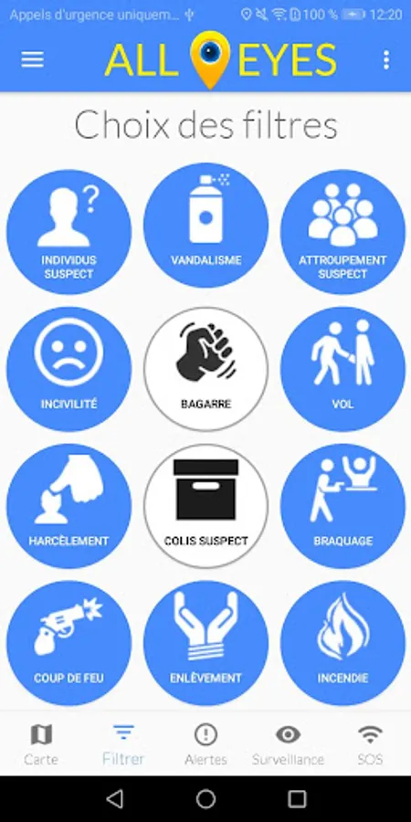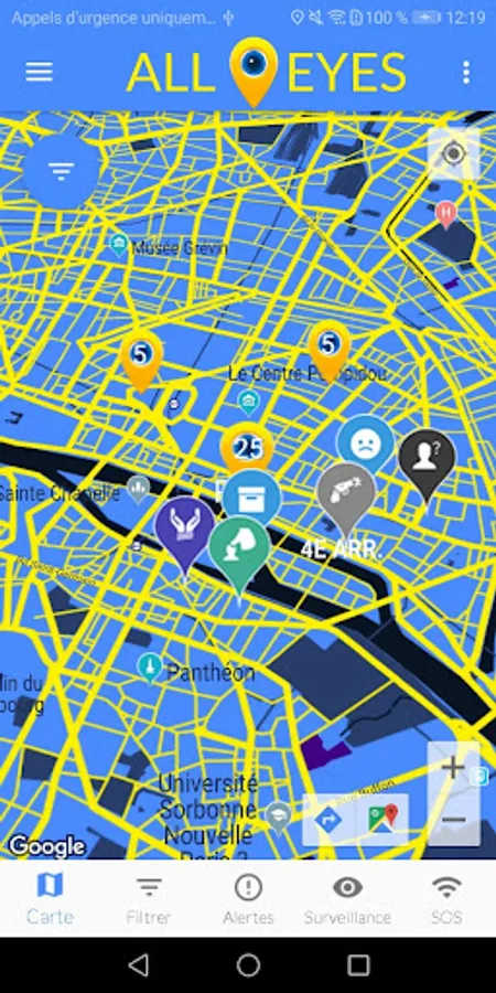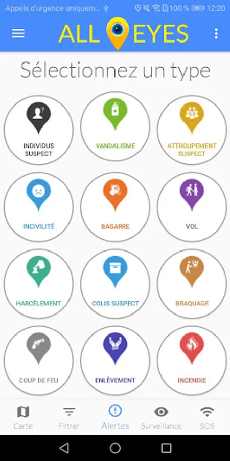 AllEyes is a free security and self-help app designed to signal and avoid dangerous areas and dangerous situations in our daily lives: suspicious gatherings, vandalism, gunshots, fires, suspicious individuals, etc. Its purpose is to enable the establishment of a community of mutual support in which everyone can contribute anonymously by reporting suspicious or dangerous events and see what is happening in their immediate environment.
