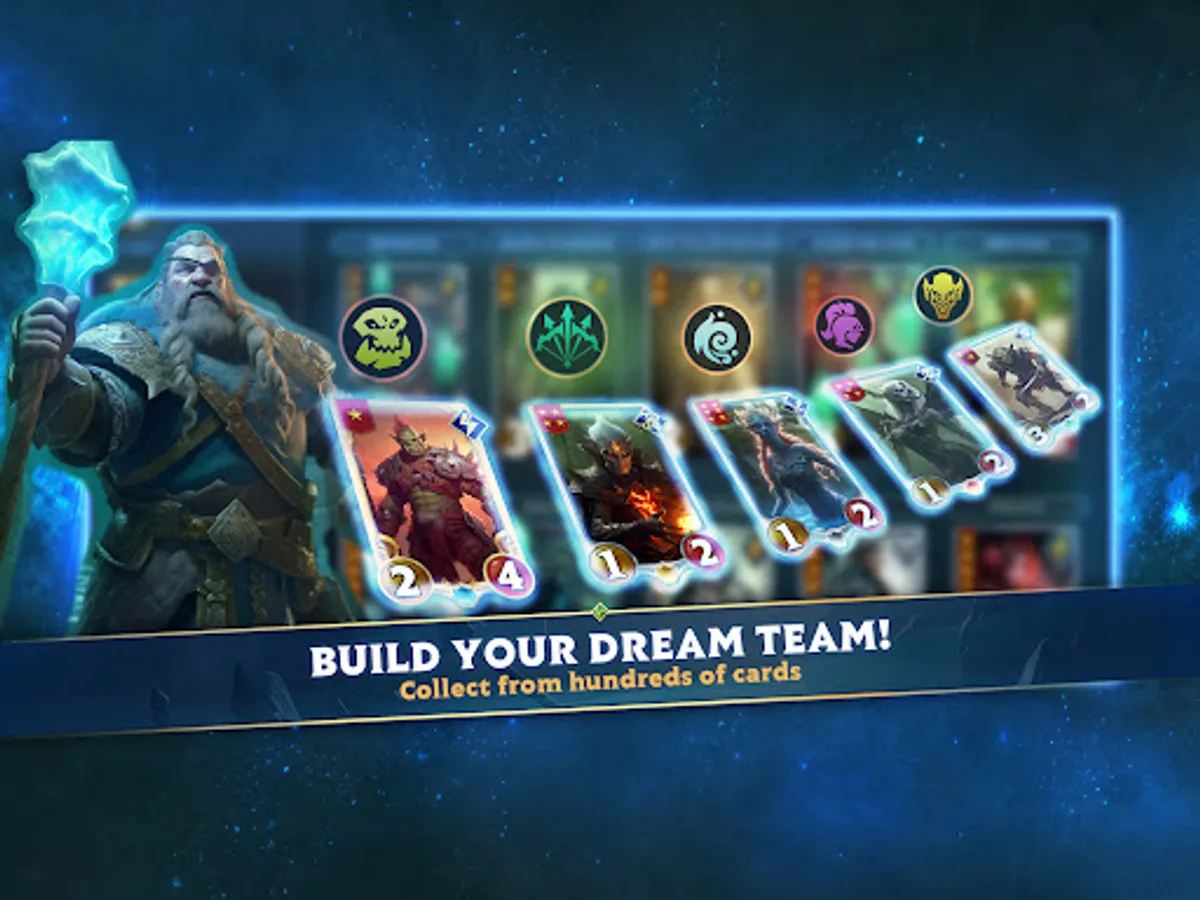 Deck Building Mastery: Collect a vast array of cards, from mythical creatures and mighty spells to enchanted artifacts. Construct your decks with precision, combining synergistic cards that harmonize with your hero's strengths.