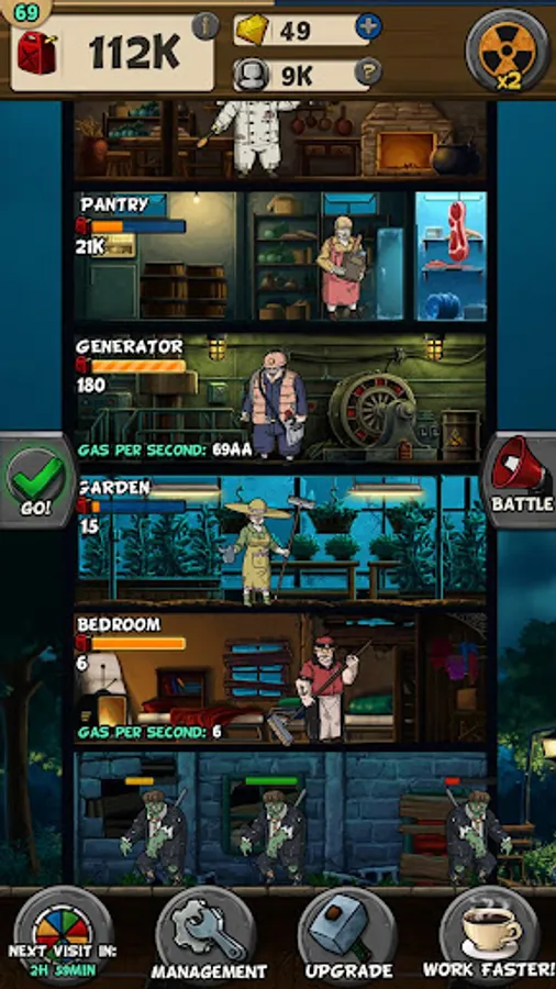 • Jump in your truck and head off into the wilderness. Gather survivors and rebuild stronger than ever. Move on, collect more survivors and rebuild as many times as you want. The more survivors you have, the more gas you can make.