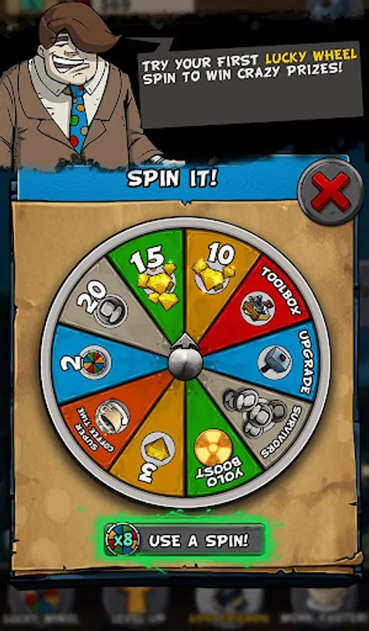 • Lucky wheel. Even in the aftermath you still get a door to door salesmen knocking at the fortress door. Earn or buy a spin on the lucky wheel to win a gift. Take a risk, after all, and it’s not like things could get any worse.