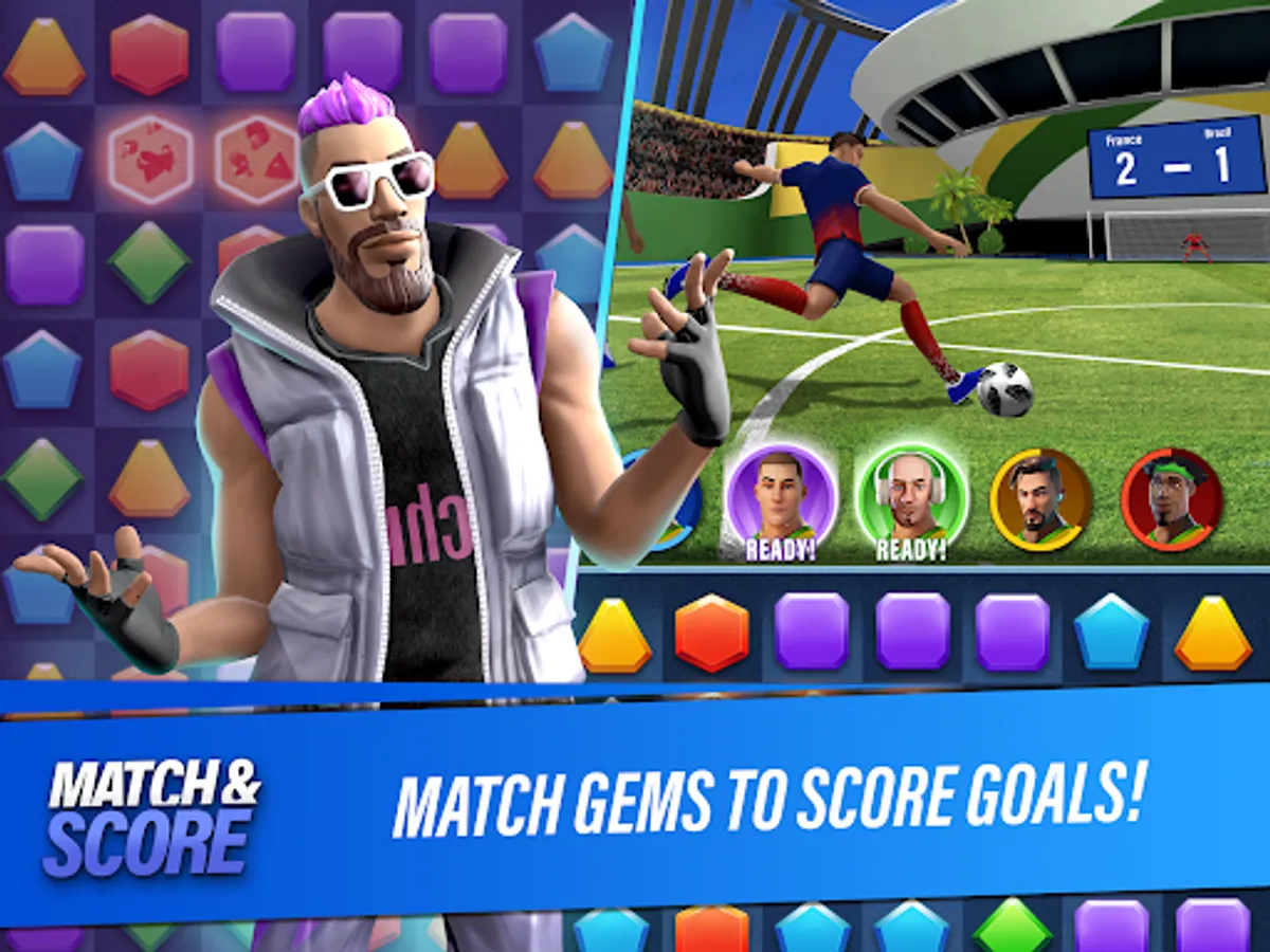Match gems and score. Will you be the first to plant your team's flag atop the soccer strategy pyramid?