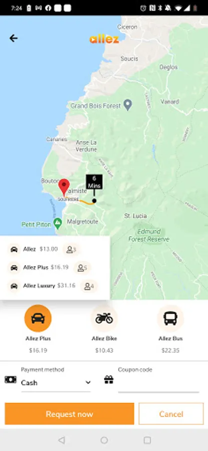 The Allez app is a convenient way to get to anywhere in St. Lucia whether by land or sea. Allez offers various modes of transportation - including car, motorcycle, bus, and boat. Allez is an affordable, convenient, and efficient way to get to your next destination. We also offer premium features like Allez Deluxe and extra space with Allez Plus.