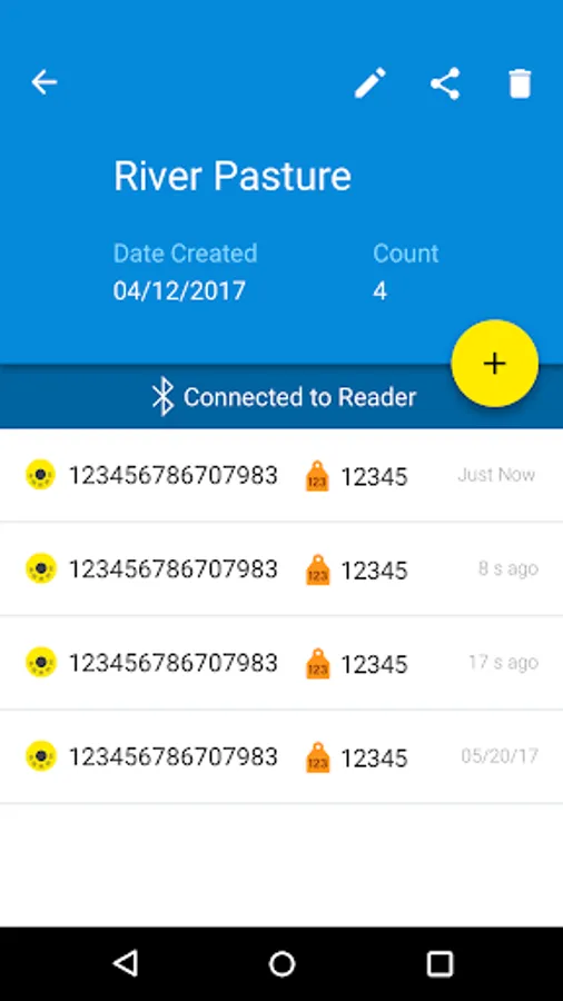 The app connects wirelessly to the reader via built-in Bluetooth – no additional hardware required and no need to connect the reader to a computer to collect information. In addition, it can support up to two additional Bluetooth devices for scanning Allflex tissue sampling units or scanning information into custom fields. You also can scan certain Allflex animal monitoring devices with the SCR420-N reader.
