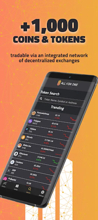 ALL FOR ONE is self-custodial crypto wallet with in-app trading. Trade, send, receive and store lots of cryptocurrencies with the ALL FOR ONE mobile app and keep track of all your wallets at once.
