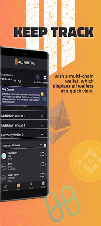 From wallet creation/import to credit card purchases as well as trading on decentralized exchanges to high security measures, ALL FOR ONE covers everything for a relaxed and user-friendly management of all your assets.