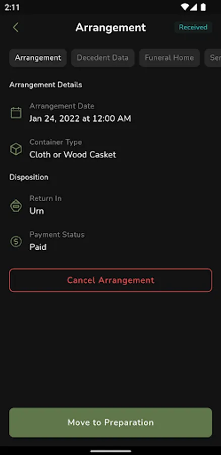Displays the most important information about cremation arrangements in the palm of your hand.