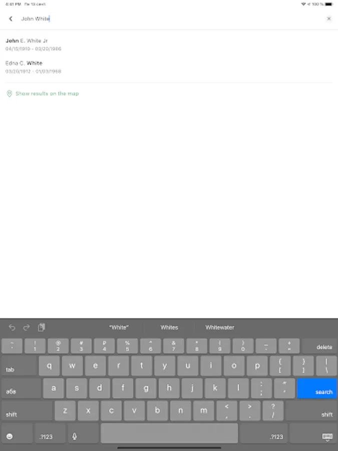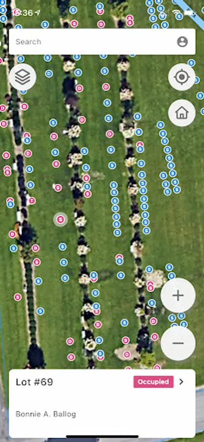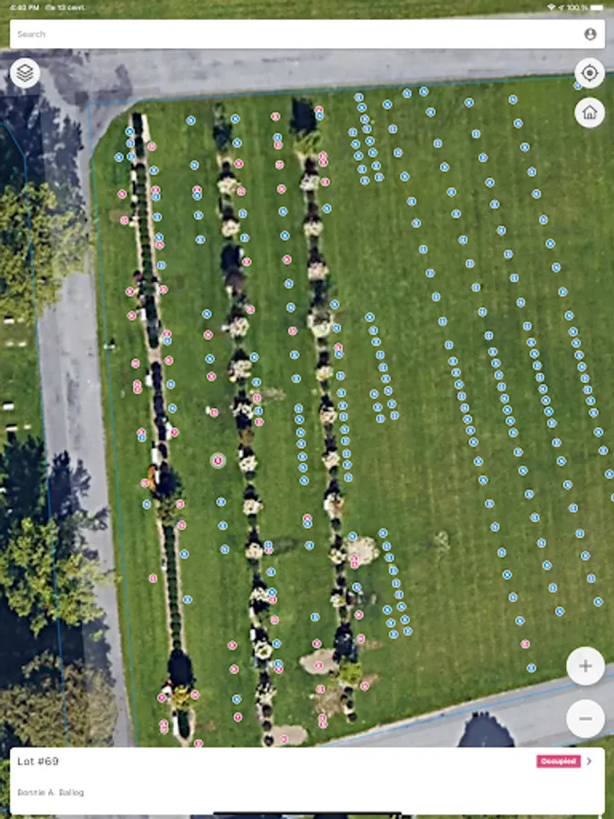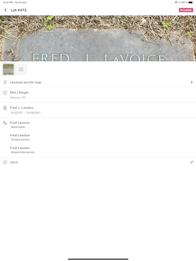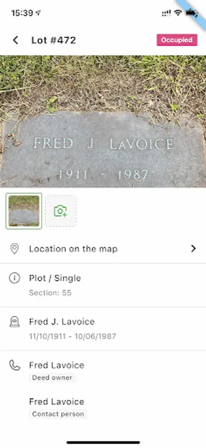 Displays the most important information about the burial in the palm of your hand.