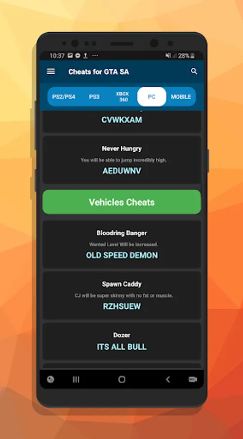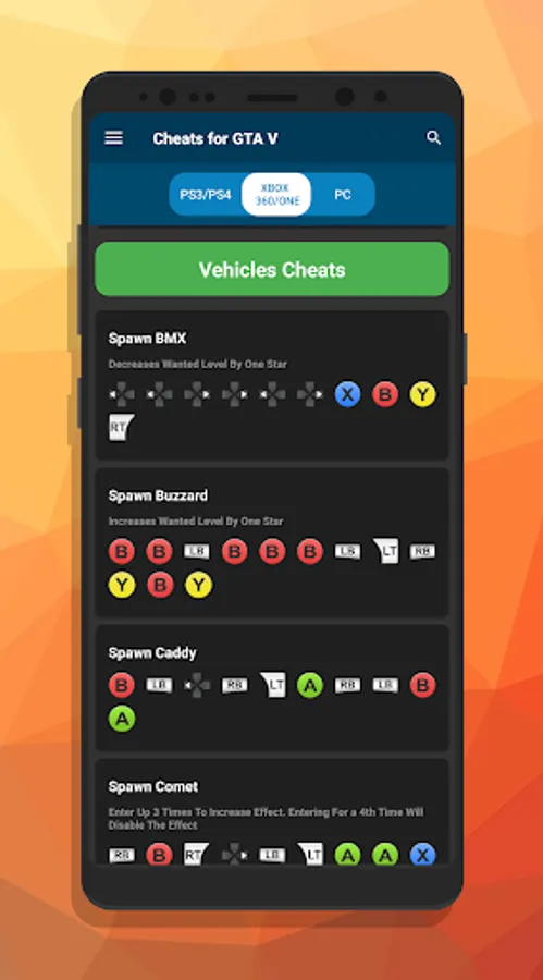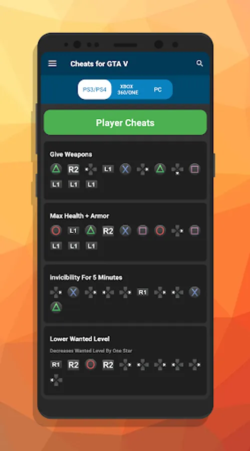 ✔️you can quickly switch between pages , to show cheats in PC , Console or mobile...