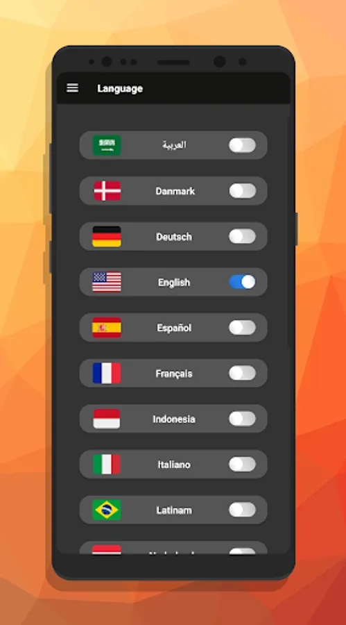 ✔️you can change the language ( Localised to 18 langages : English / Arabic / French / Spanich / German / Latin / Danish / Indonesian / Italian / Dutch / Swedish / Russian / Hindi / Turk / Chinese / Japanese / Korean / Persian).
