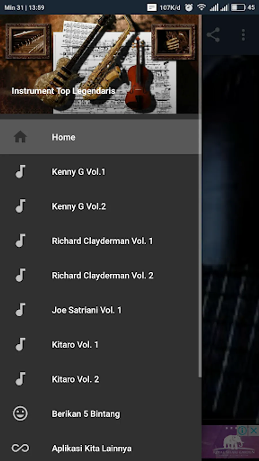 In a set of applications Instrument Top Songs Legendary mp3 summed it easy for you perdengarkan daily, set Song List Mp3 Full Album Complete the best instrument that will always be the latest and updated as a complement Legendary Instrument track. Do not miss to get a collection of songs Instrument Top Legendary collection that will always update to you all, of course you will never lose to download applications Instrument Top Songs This new Legendary !! Wait no more, immediately download it now.