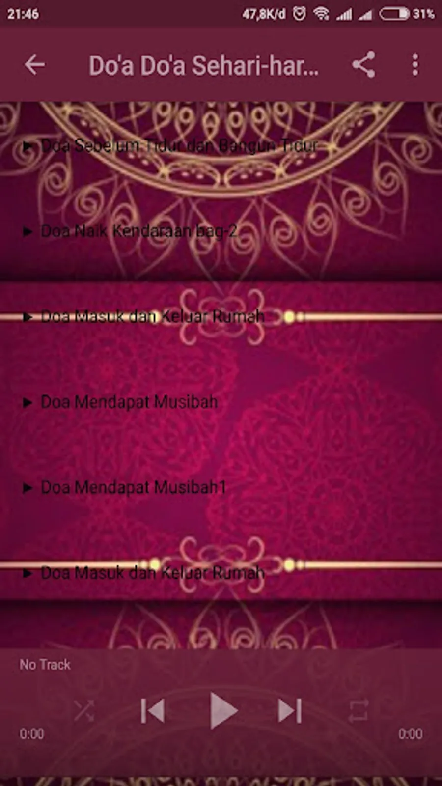 In the application there are murottal Qur'an and prayers of daily life that we used to do, Download Mp3 summarized options are easy to learn day to day that will always be the latest and updated. As a complement you the most complete collection of Islamic studies the application Murottal Qur'an and Benediction mp3 in one application can be an addition for us to learn and resume practicing. Do not miss to get Murottal Qur'an and supplication will always update to you all, of course you will never lose to download Murottal Qur'an and Benediction Full APK Download this !! Wait no more, immediately download it now.