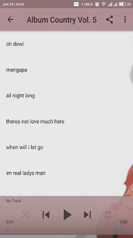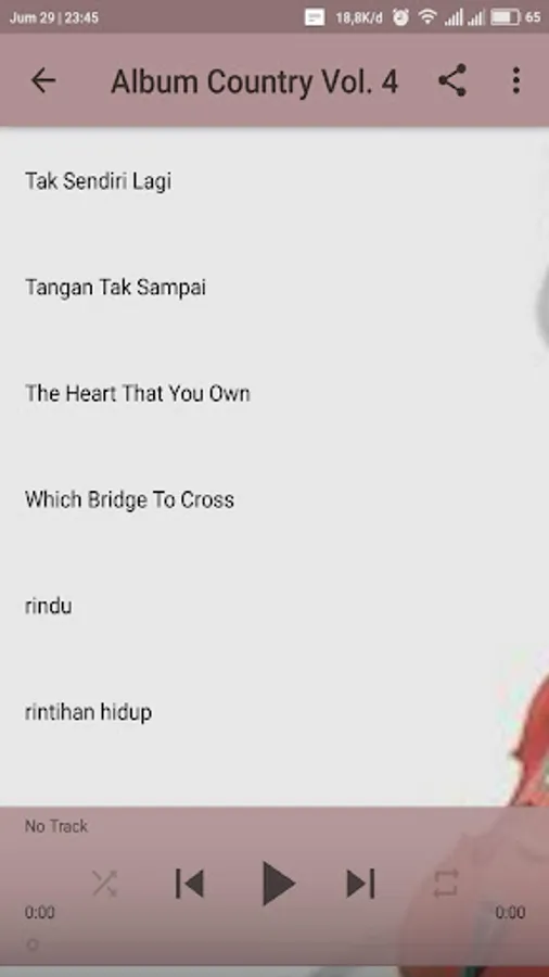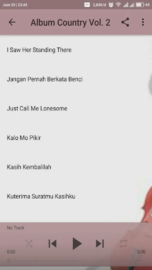 Going forward, we will always be updated set of Songs The Best Country Indonesia. Hopefully, the friends all always install the application so that we always have the support of all of them in developing this application. Hopefully Helpful for everything and congratulations use set of application The Best Country Songs Indonesia this from your Android device, respectively. Thank you very much well.