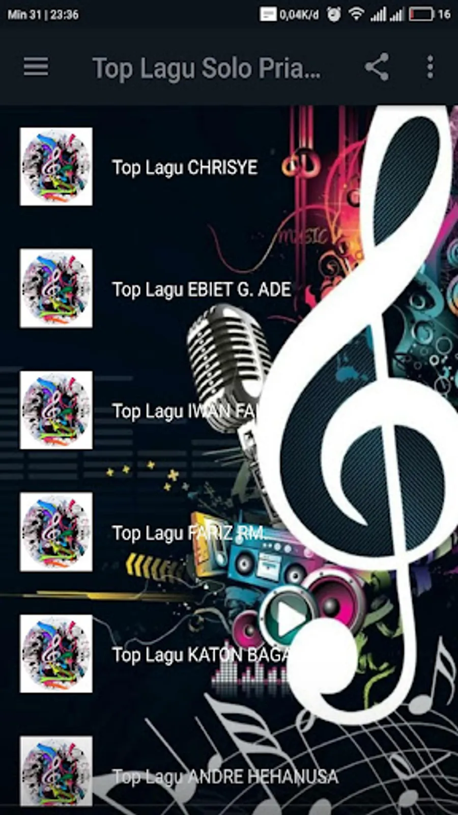 In a set of applications downloaded Top Songs Best Male Solo summed up easily to your daily perdengarkan, set LTop Song List Best Male Solo best full-length album that will always be the most complete and updated as complementary male solo song. Do not miss to get a collection of collection of Top Songs Best Male Solo will always update to you all, of course you will never lose to download apps Top Songs Best Male Solo new !! Wait no more, immediately download it now.
