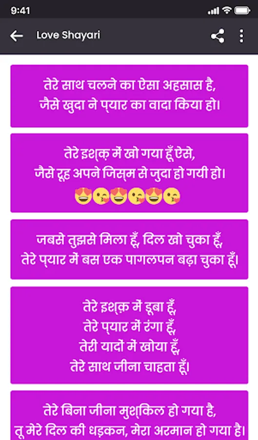 Love Shayari is one of the most unique ways of effectively expressing yourself in front of your lover. Immerse yourself in the enchanting world of romantic shayari and let your emotions soar. Express your deepest feelings with our vast collection of beautifully crafted verses. Share love, passion, and longing with your loved ones through the power of words. Experience the magic of love shayari and embrace the beauty of love.