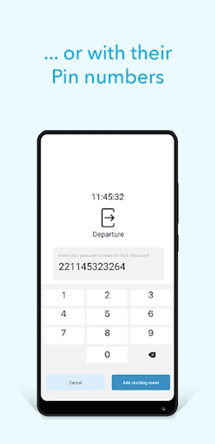 Turn your phone into a time terminal where employees can clock-in or out of work by presenting their NFC card or by inputting their PIN number.