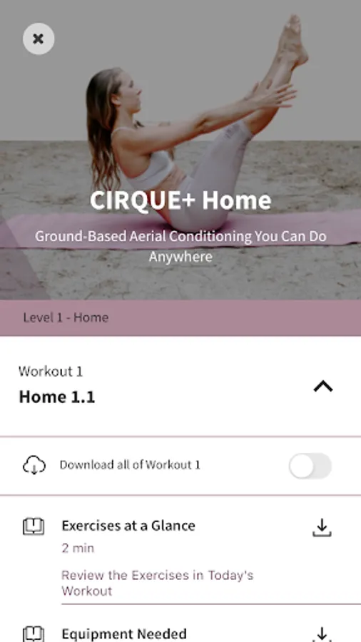 CIRQUE+ At Home is a Lite program designed to offer structure for aerialists without access to equipment. Efficient workouts are designed to MAINTAIN and BUILD strength.