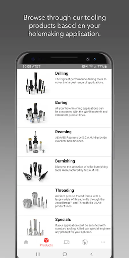 The Allied Machine App connects you seamlessly to a wide scope of information on Allied’s holemaking and finishing cutting tools, free online utilities, and much more.