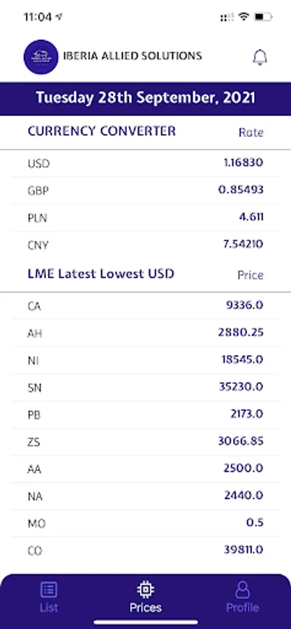 Application for Customers. Here you can find material prices, LME prices and other useful information.