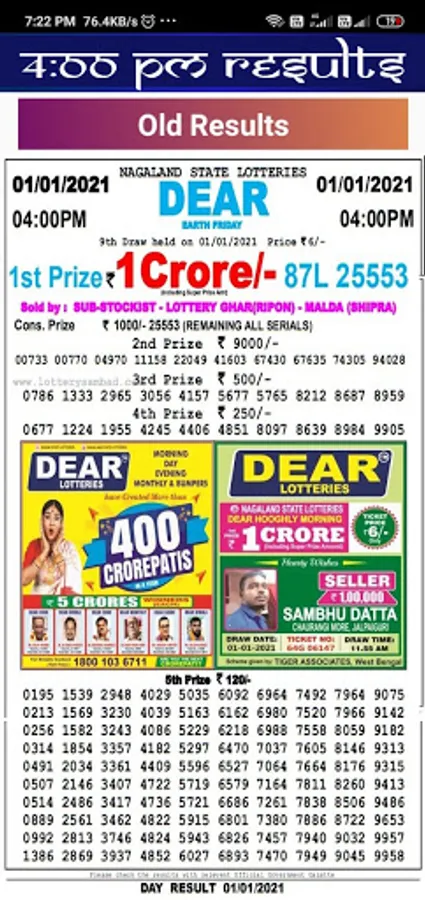 • Old results: you can find old nagaland Lottery result here like if you want to see old result of lottery for last five days or ten days then there is a special old lottery result tab you can use that for old Nagaland lottery result.