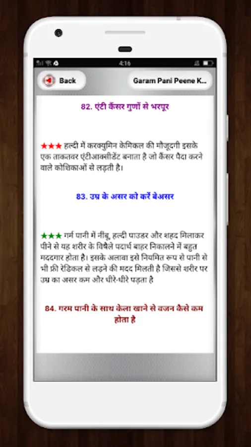 So, if you really want to know about what good drinking warm or hot water does to your health, you should download and install Garam pani peene ke 101 phaayede app and keep looking at it every once in a wile on these health tips hindi mai.