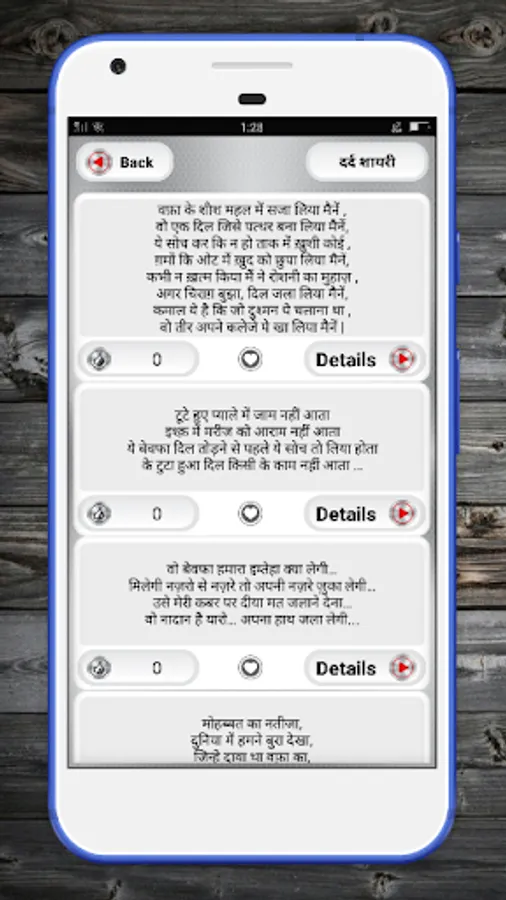 You will find beautiful best heart touching shayari in hindi with images within this kavya sangrah – hindi poems – kavita app. It can become your digital shayari book with very beautiful collection of shayari hindi taken from the best shayari books in hindi. No one will give you a good hindi poetry books free of cost; but we offer all these wonderful heart touching all shayari app in hindi completely free. You will get to read almost every type of kavita hindi including heart touching love shayari in hindi, along with Hindi Judai Shayari Collection - जुदाई उदासी शायरी and more.